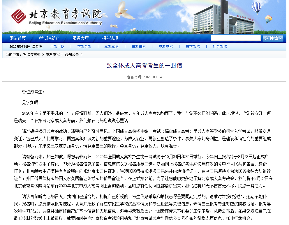 最后,引用北京教育考试院的《致全体成人高考考生的一封信》里的几段话吧,祝福各位成考考生!