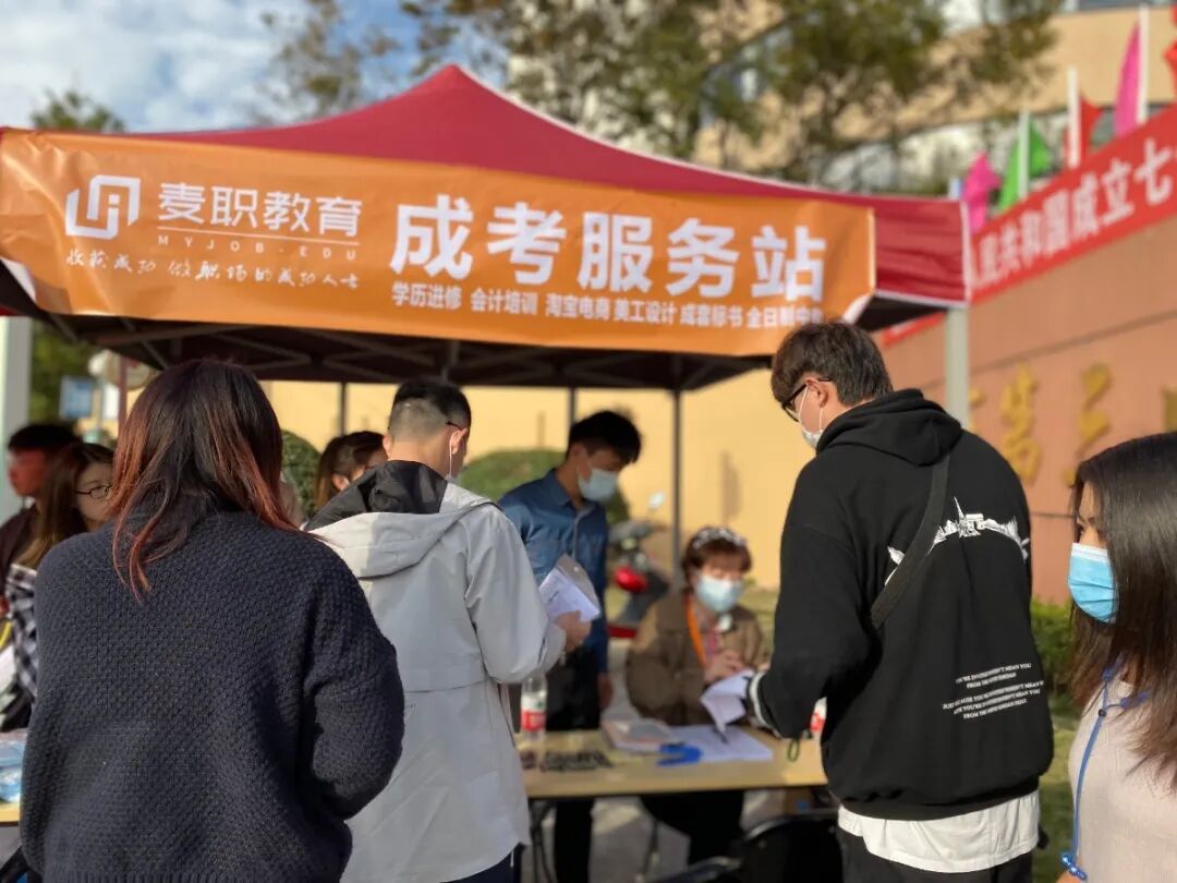 在地区集中考试的地方,麦职教育还设置了成考服务站,在考试这一天帮助服务大家,不仅有临时的文具、口罩、饮水提供,最重要的是能够帮助考生提供考场、考试信息服务,帮助考生快速了解学校情况和考试情况。